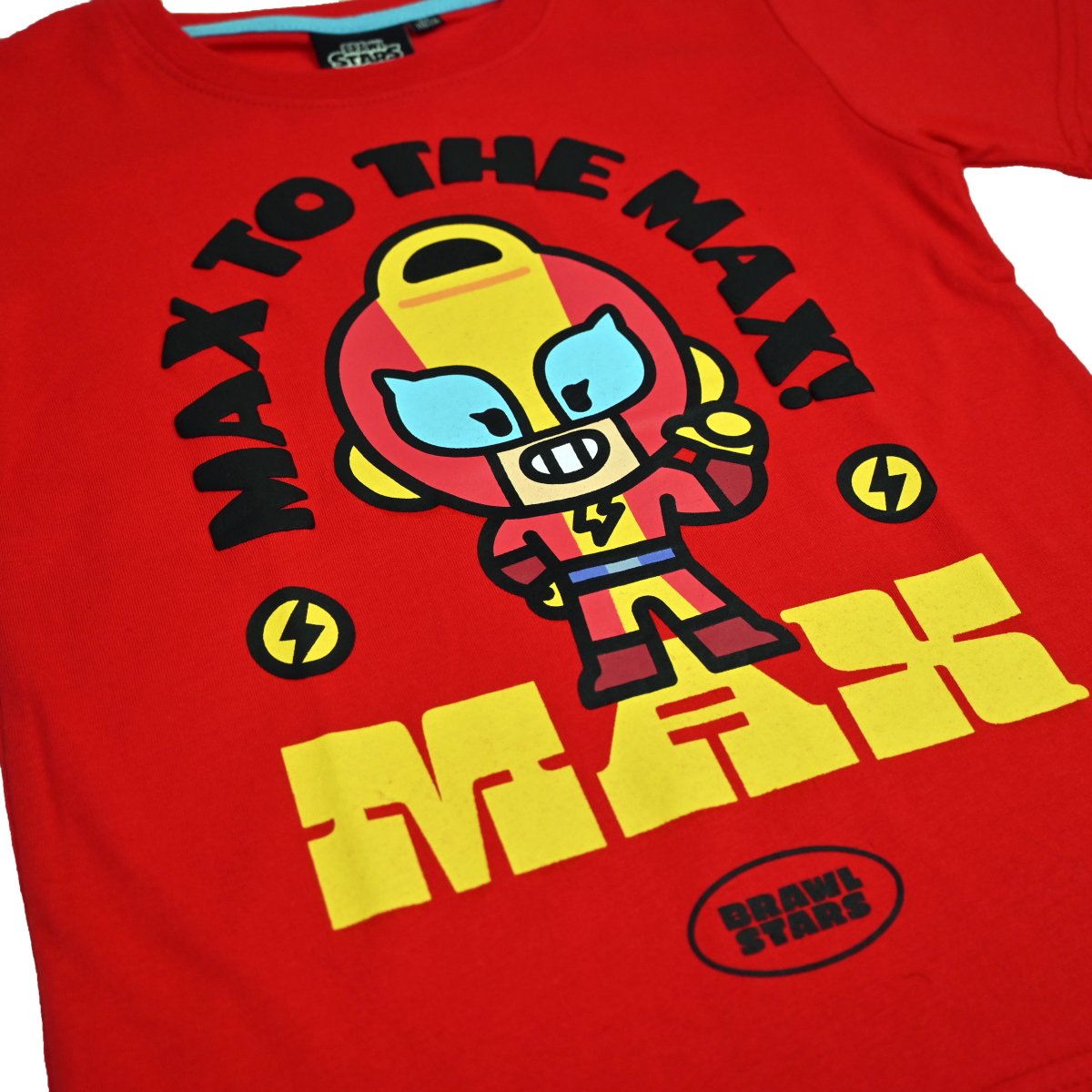 Complete your child's wardrobe with this red Brawl Stars t-shirt, featuring Max from the series and the text "Max to the Max!". This garment is an ideal choice for young Brawl Stars fans and will undoubtedly add a dose of action and style to their outfit.
