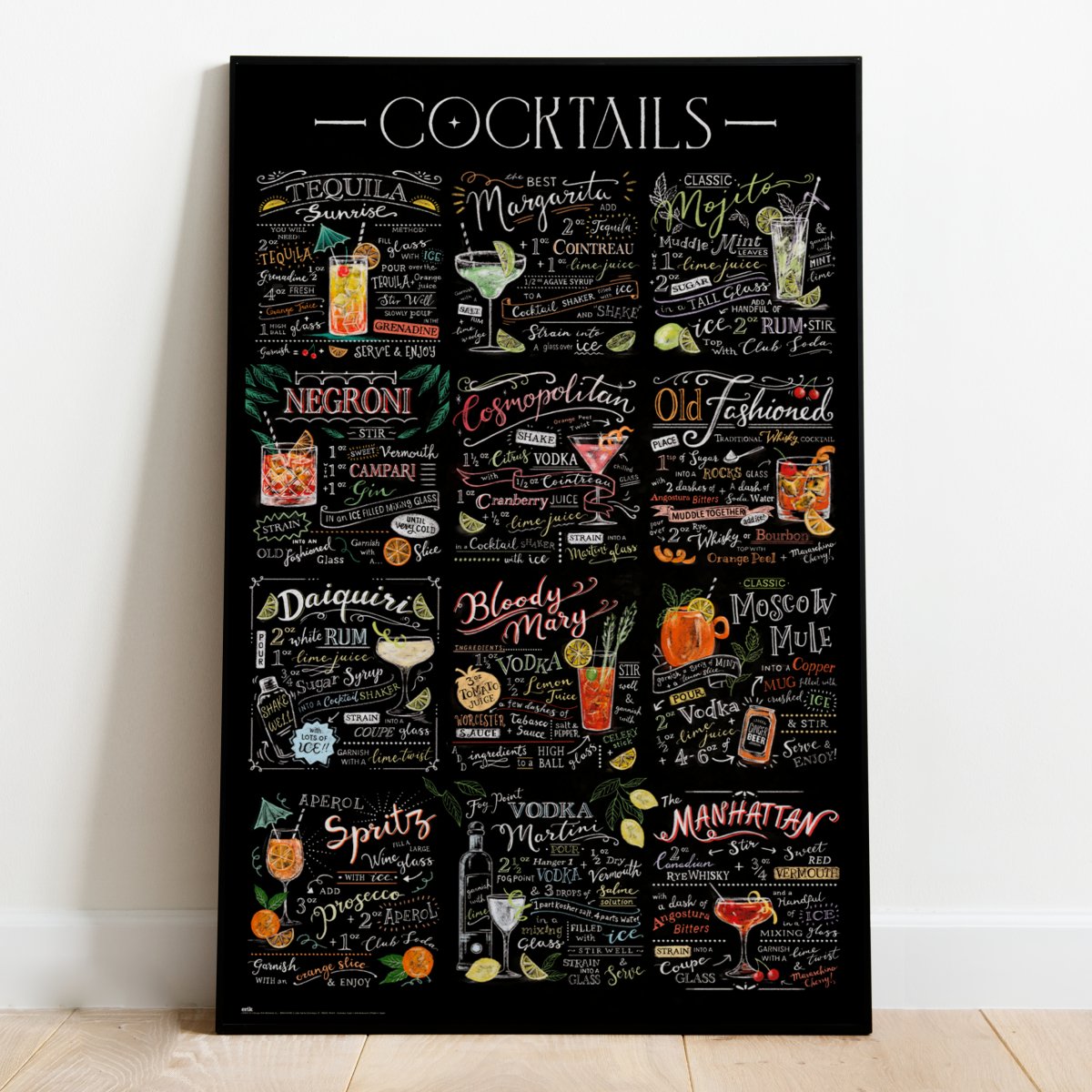 Printed on high-quality glossy paper with a weight of 150 g/m², ensuring durability and longevity, the poster displays each drink and its components in a clear and easy-to-read way, making it perfect for any home bar or kitchen, or as a gift for your cocktail-loving friend.