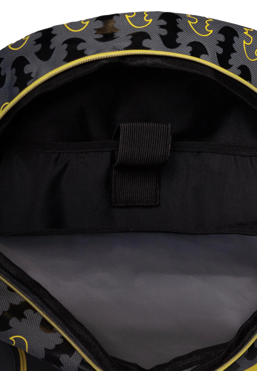 The backpack features premium details like an embossed yellow Bat-symbol on the outer front pocket and matching zippers and straps. These graphic elements give the backpack a unique and exciting aesthetic, making it a great gift idea for Batman enthusiasts. Discover more Batman merch and make your everyday life more heroic.