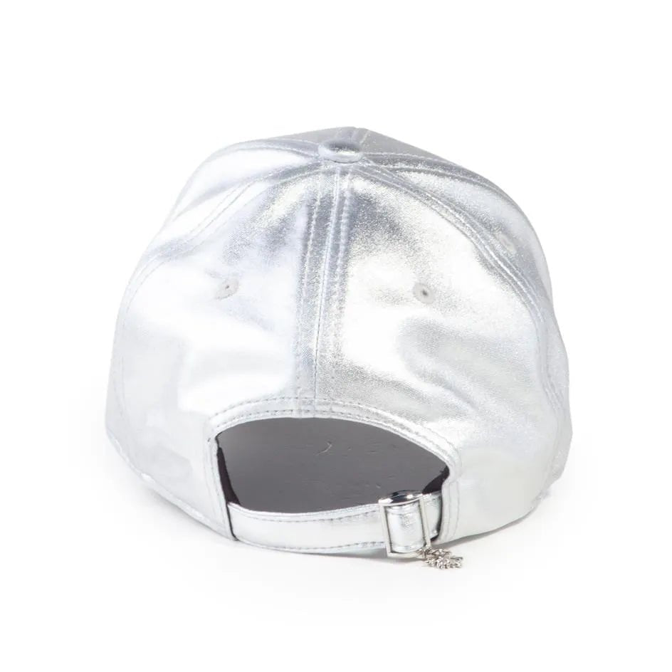 This cap features an adjustable brim for a classic look and a silver chain at the back for a sophisticated finish. Made from silver PU material, it shimmers with every movement, adding a touch of magic to your outfit. The adjustable strap with metal buckle ensures a comfortable fit, while a charming silver snowflake charm adds a playful touch.