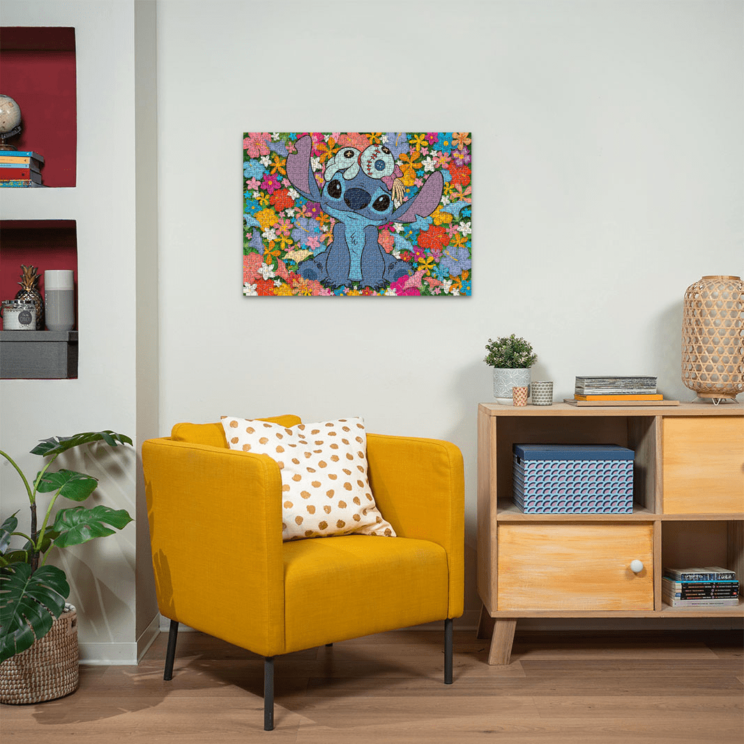 Take a break from everyday life and embark on a colorful adventure with this beautiful Lilo and Stitch puzzle with a total of 1000 pieces. Here you will meet Stitch, the charming and mischievous creature from the Disney universe, surrounded by a lush and colorful floral splendor. Perfect for a Lilo and Stitch fan who appreciates a challenging and relaxing puzzle adventure.