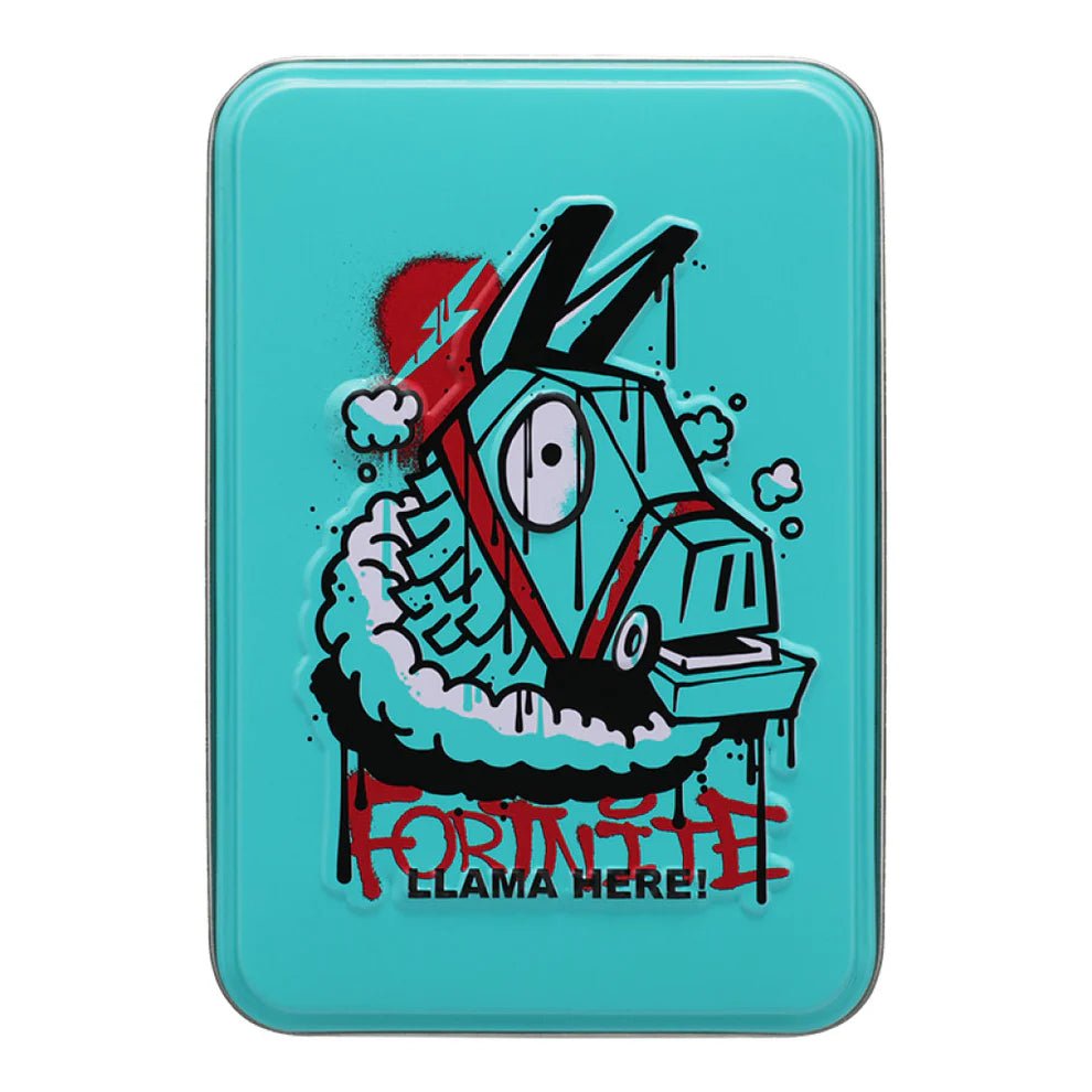 The deck comes in a matching metal box for safe storage and contains a full standard set of cards. Whether it's poker, solitaire or another favorite card game, these cards are sure to provide a colorful experience. Explore all of our playing cards and see all of our decks for more unique Fortnite merch and cool Fortnite stuff.
