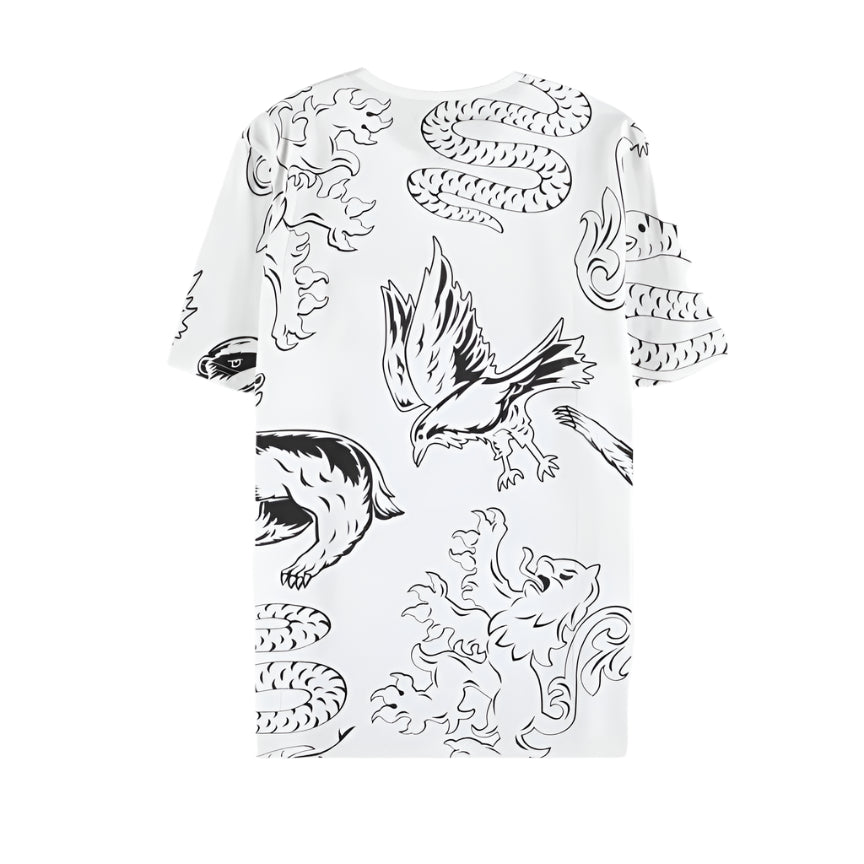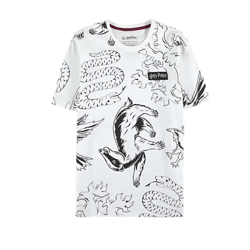 Experience the magic of your favorite movie with this cool Harry Potter T-shirt. This stylish shirt is perfect for any Harry Potter fan and adds a magical touch to your everyday outfit. With its distinct white and black design, adorned with classic symbols from the famous wizarding world, this shirt is a must-have for any collector of Harry Potter merch.
