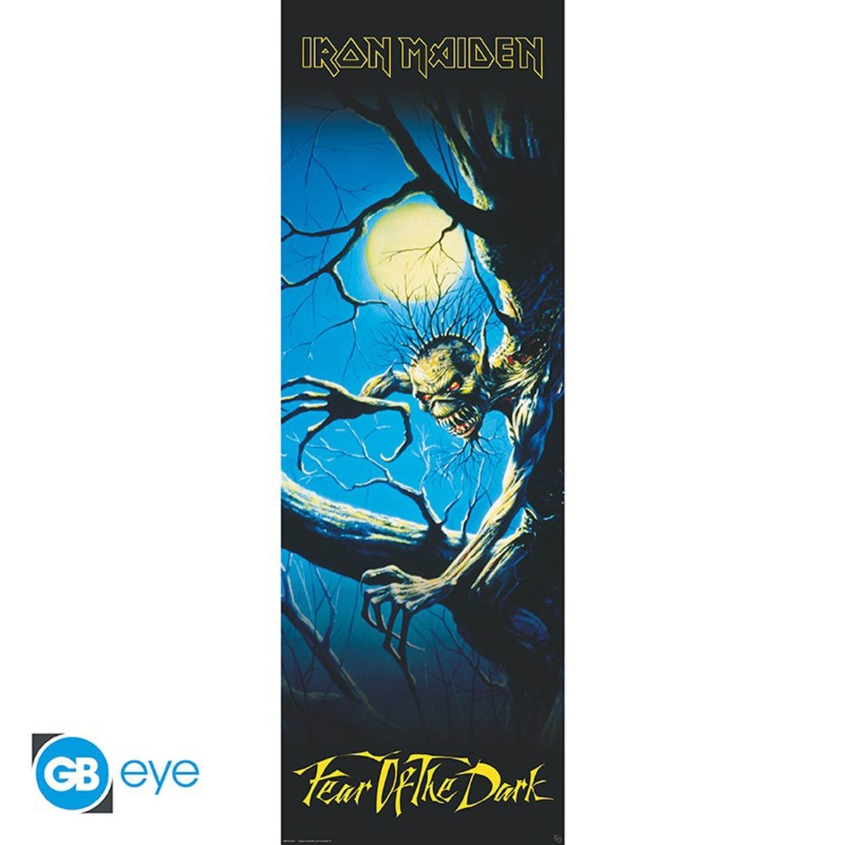 "Fear of the Dark" is one of Iron Maiden's most acclaimed albums , and this poster celebrates the iconic album cover, which features the band's terrifying mascot, Eddie, in an eerie forest setting. For all Iron Maiden fans, this poster will be a fantastic way to show your devotion to the band.