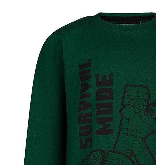 Give a Minecraft fan the ultimate gift with this stylish green Minecraft sweatshirt! Featuring a cool design of Steve and Alex in Survival Mode, this sweatshirt is perfect for little adventurers who love the game. Made for comfort and style, it fits perfectly as part of our range of kids' clothing and Minecraft merch.