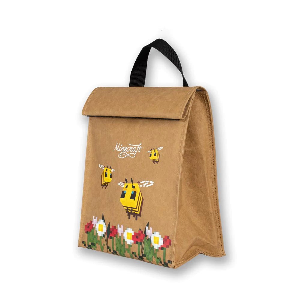 This fold-over lunch box is fully insulated to keep your food fresh and delicious, and it's spacious enough to hold a satisfying lunch or a tasty snack. Measuring 17cm H x 21cm W x 12cm D, it's both functional and large enough to carry all of your little Minecraft fan's lunch favorites. Designed with a charming Minecraft Bee theme, this lunch box is sure to be a hit with kids.