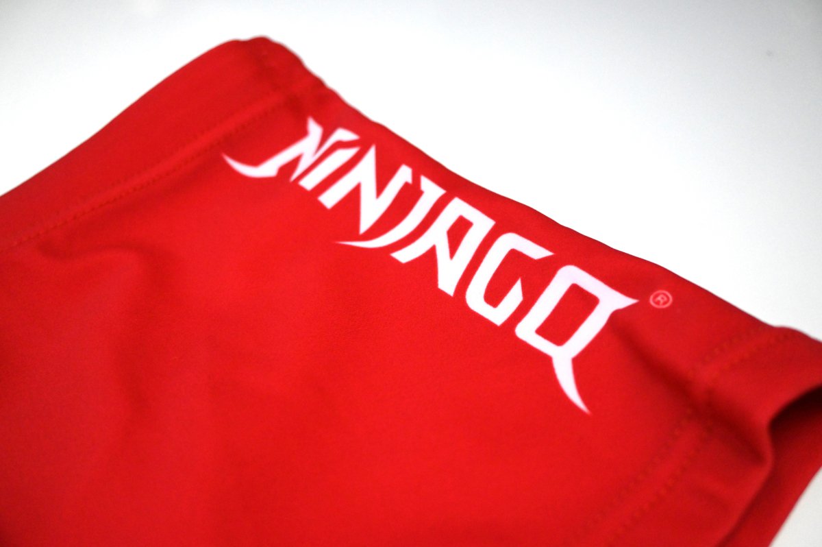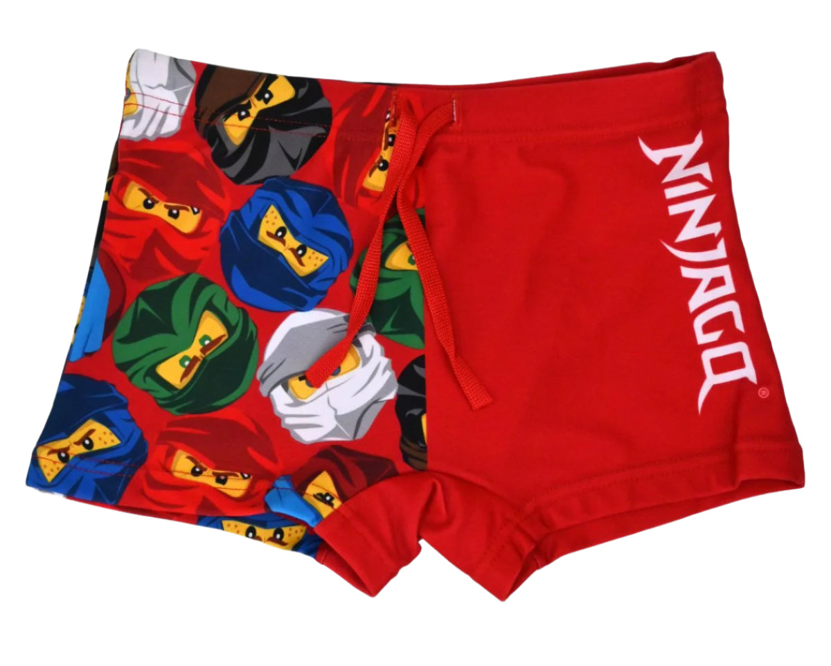 The red color of the swim trunks gives life and energy , while the image of the Ninjago characters on the right side and the Ninjago logo on the left side will excite all little fans. This design is ideal for children who love action and adventure, and want to express their enthusiasm for the Ninjago universe.