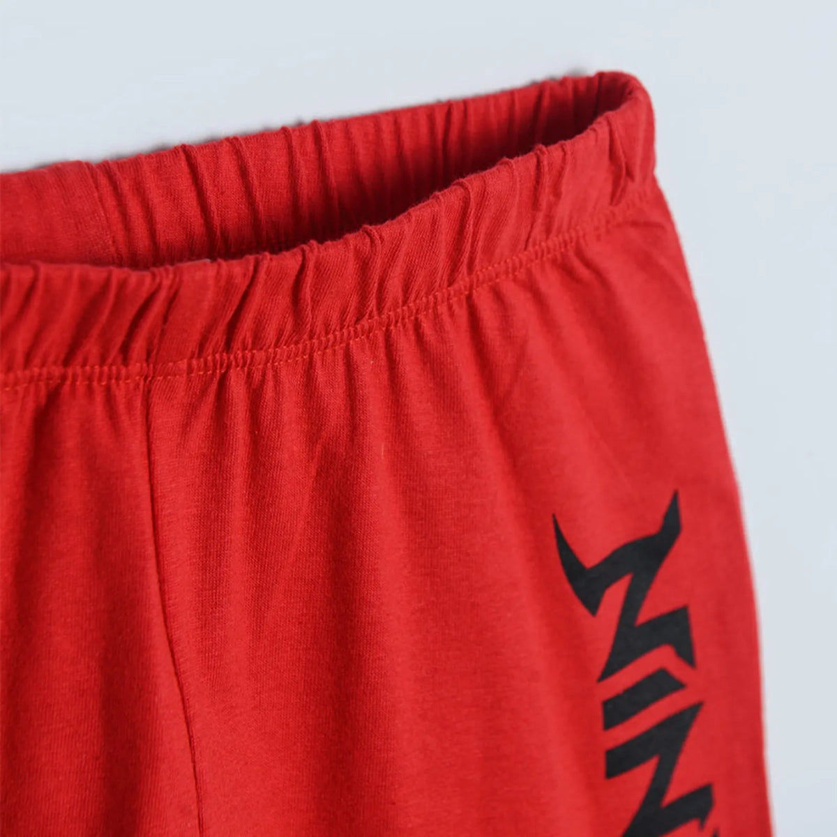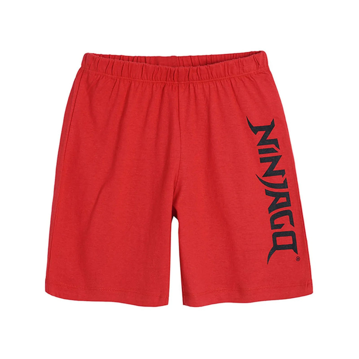 The shorts are red and have the Ninjago logo printed on the left side, which gives a unified and harmonious look to the pyjama set. These shorts complement the t-shirt perfectly, creating a colorful and exciting pyjama set.