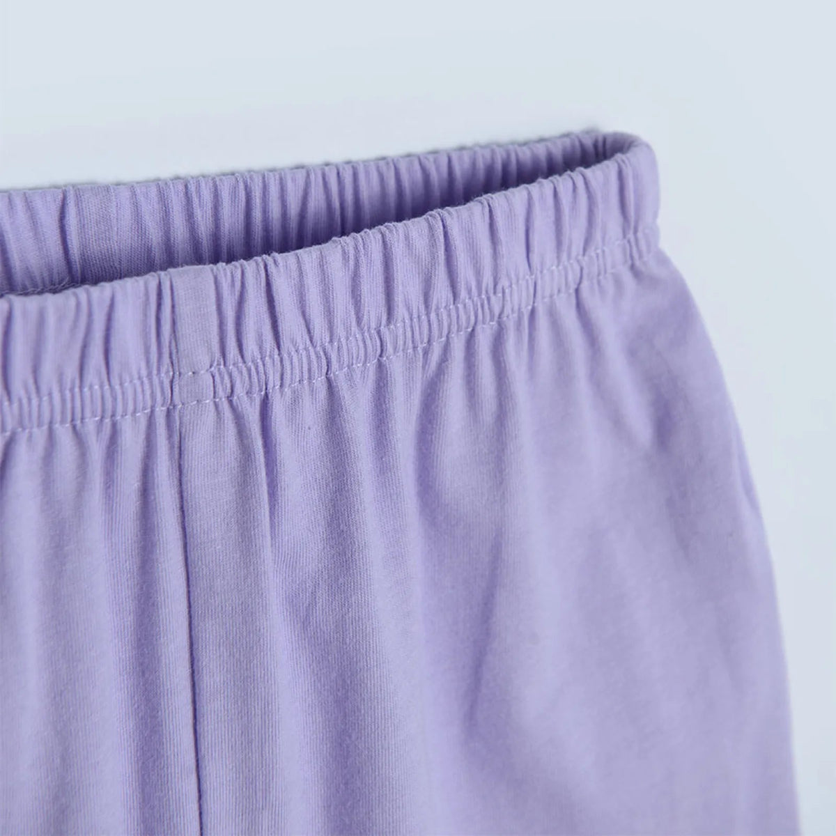 The shorts are purple and have a comfortable elastic waistband , ensuring a comfortable and adjustable fit. These shorts are perfect for warmer nights and allow your child to move freely while they sleep or play before bed.