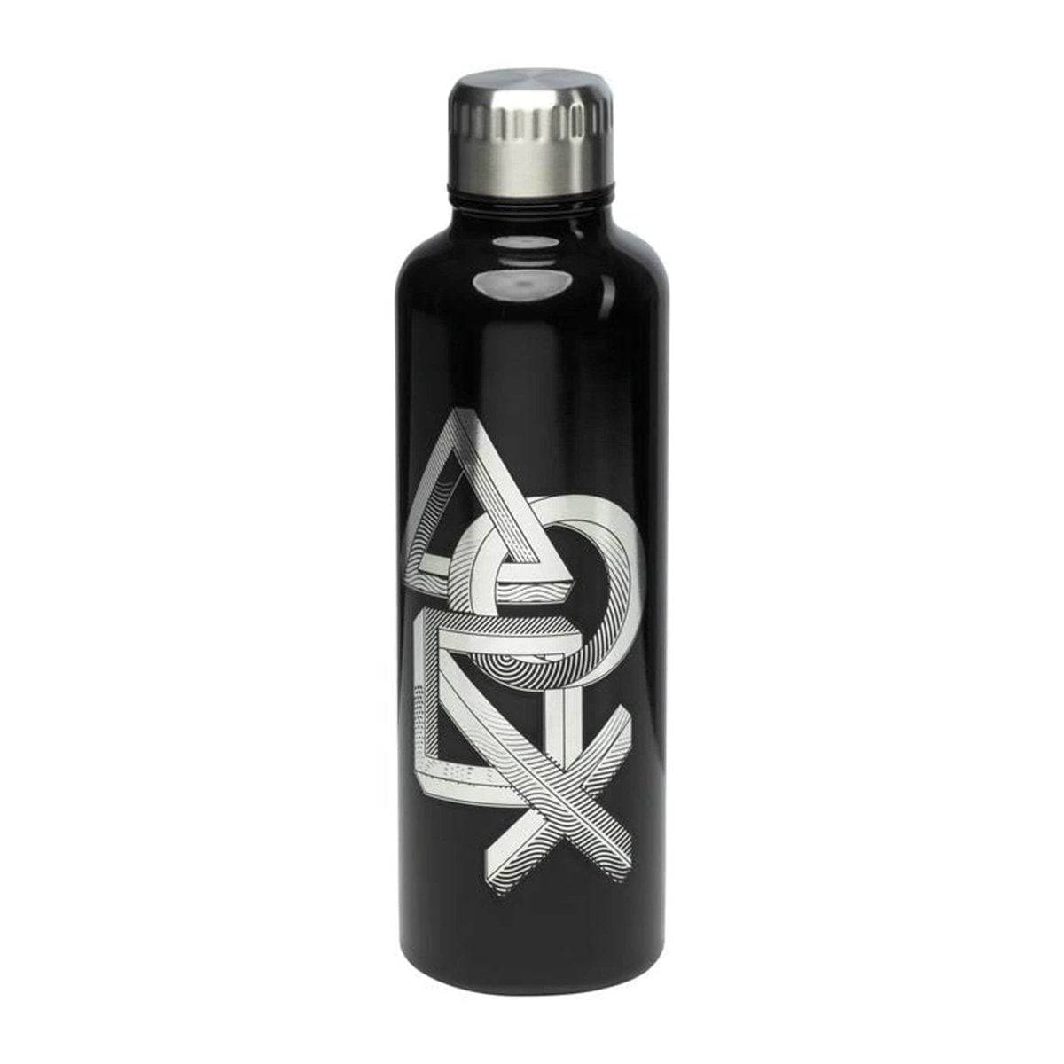 With a black and brushed stainless steel surface, this Playstation drinking bottle shines.
