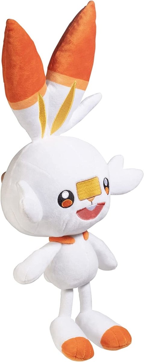 This Scorbunny plush figure stands 30cm tall, ideal for cuddling and playing. Made with premium plush materials, this teddy bear is incredibly soft to the touch, and sturdy enough to withstand hours of play and adventure. With its distinctive white and orange colors, as well as the iconic ribbon around its nose, this Scorbunny teddy bear will make a great addition to any Pokémon collection.
