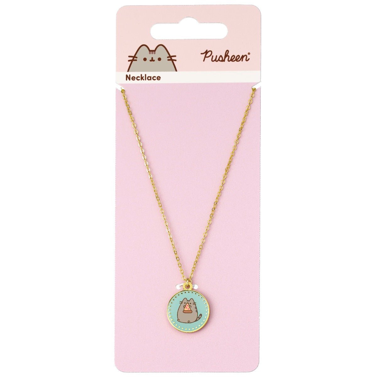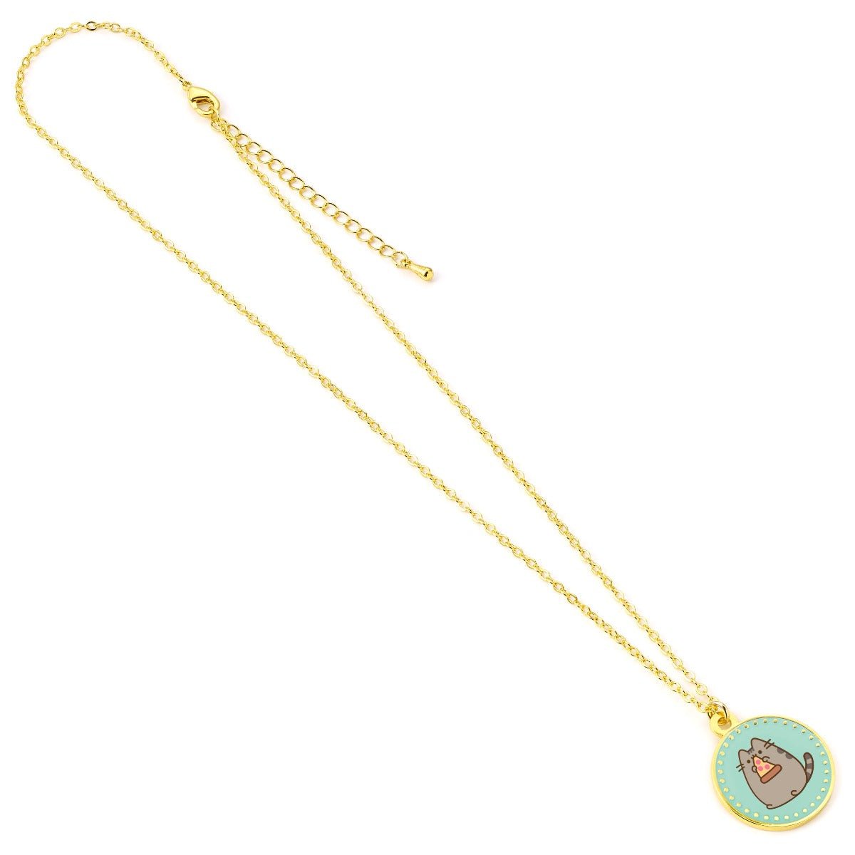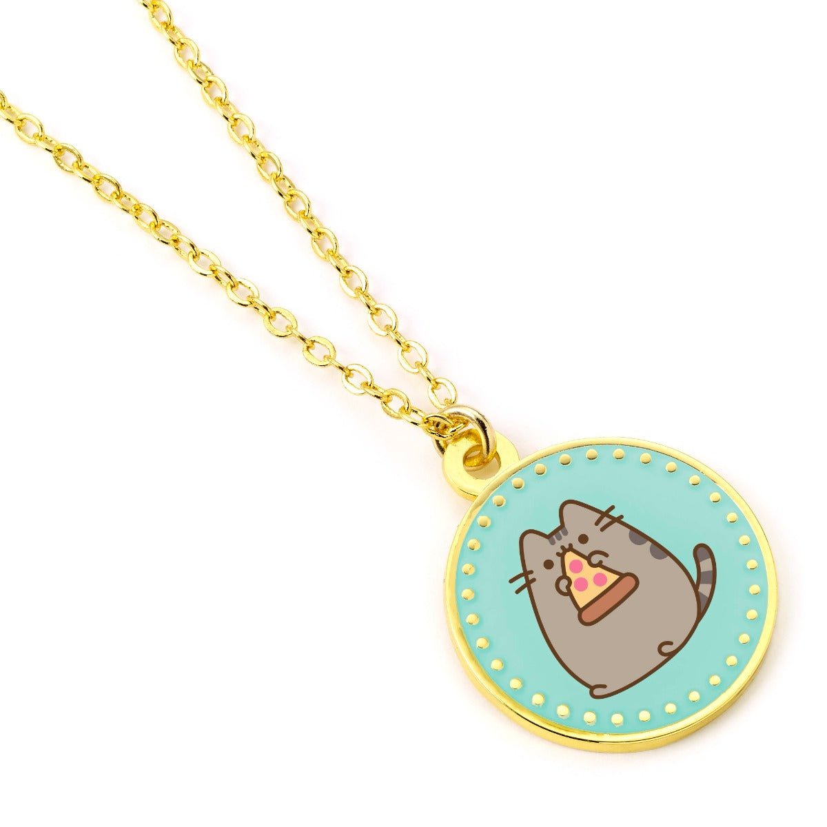 Dress up your favorite cat with this striking blue enamel and gold-tone necklace! The playful round pendant, depicting Pusheen the Cat enjoying her favorite meal – pizza, is the perfect piece of jewelry to show your love for her. With a 40cm chain and extender, this necklace is a must-have for any Pusheen fan over the age of 14.