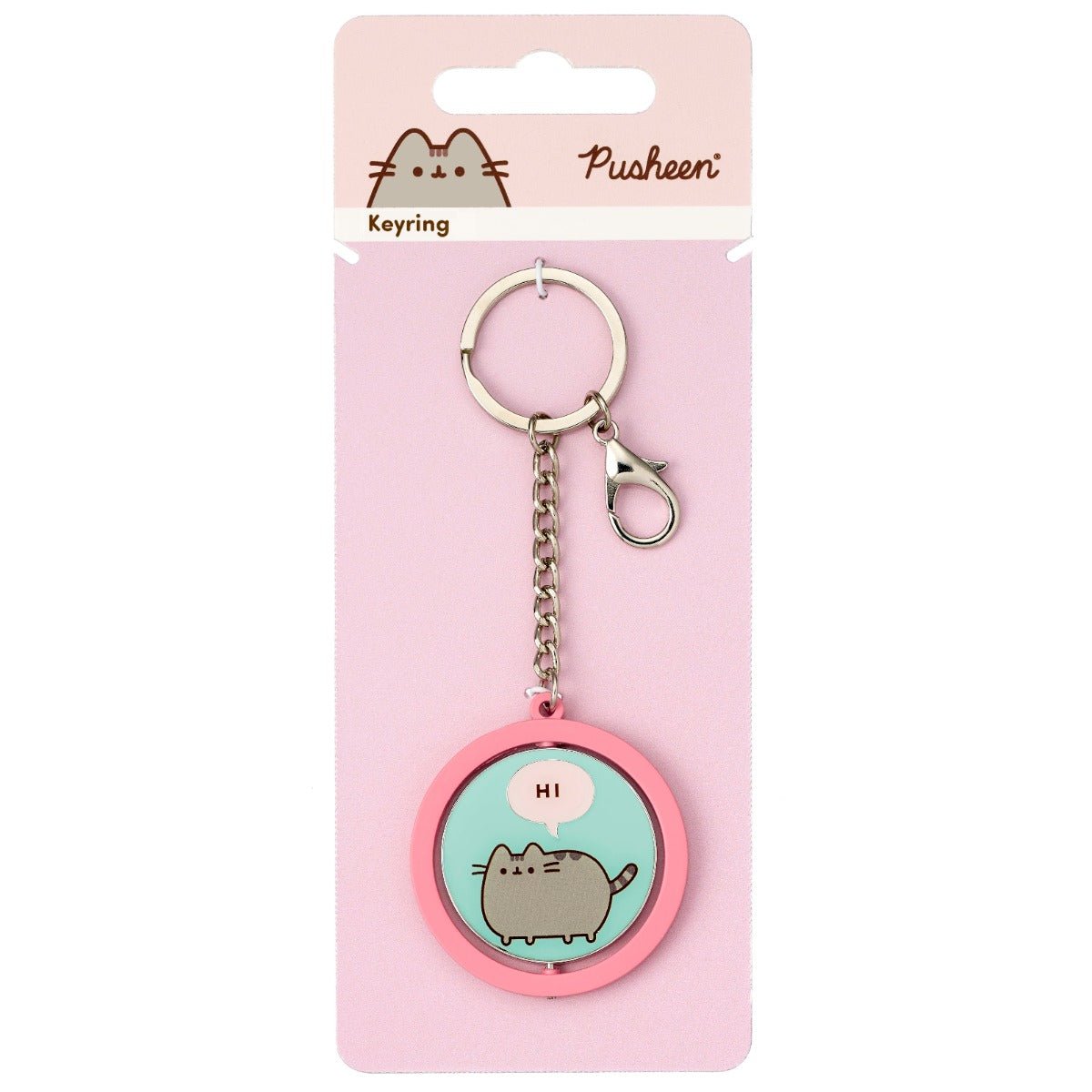 Always feel in good company with this unique Pusheen key ring that spins, displaying the greetings "Hi" or "Bye"! In pink and blue, this key ring is not only a practical way to keep track of your keys, but also a fun addition that is sure to bring a smile to the face of any Pusheen fan. It is ideal for adding a personal touch to your key ring and providing daily Pusheen joy.