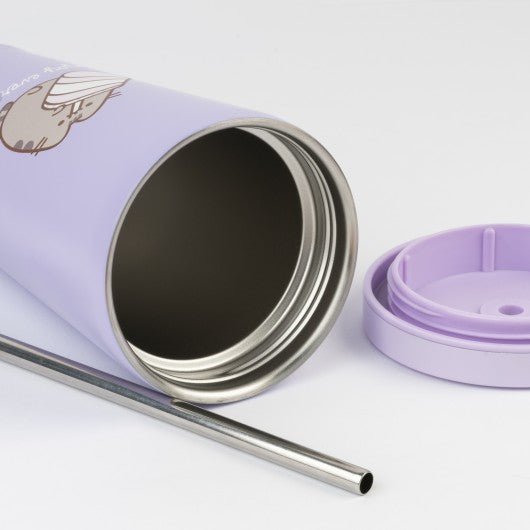 This thermos mug stands out with its included airtight lid, a metallic straw, and a straw cleaning tool, ensuring you can enjoy your drinks on the go without any mess. With its charming Pusheen design, this thermos mug is not only functional, but also a stylish statement piece that shows your love for the iconic gray cat.