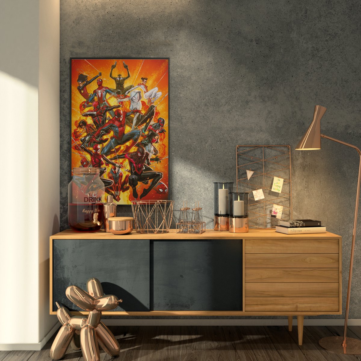 Hanging this poster on the wall will undoubtedly add a unique touch of Spider-Man theme to any room. It is equally suitable for the bedroom as for the living room, and will definitely catch the attention of all Marvel fans.