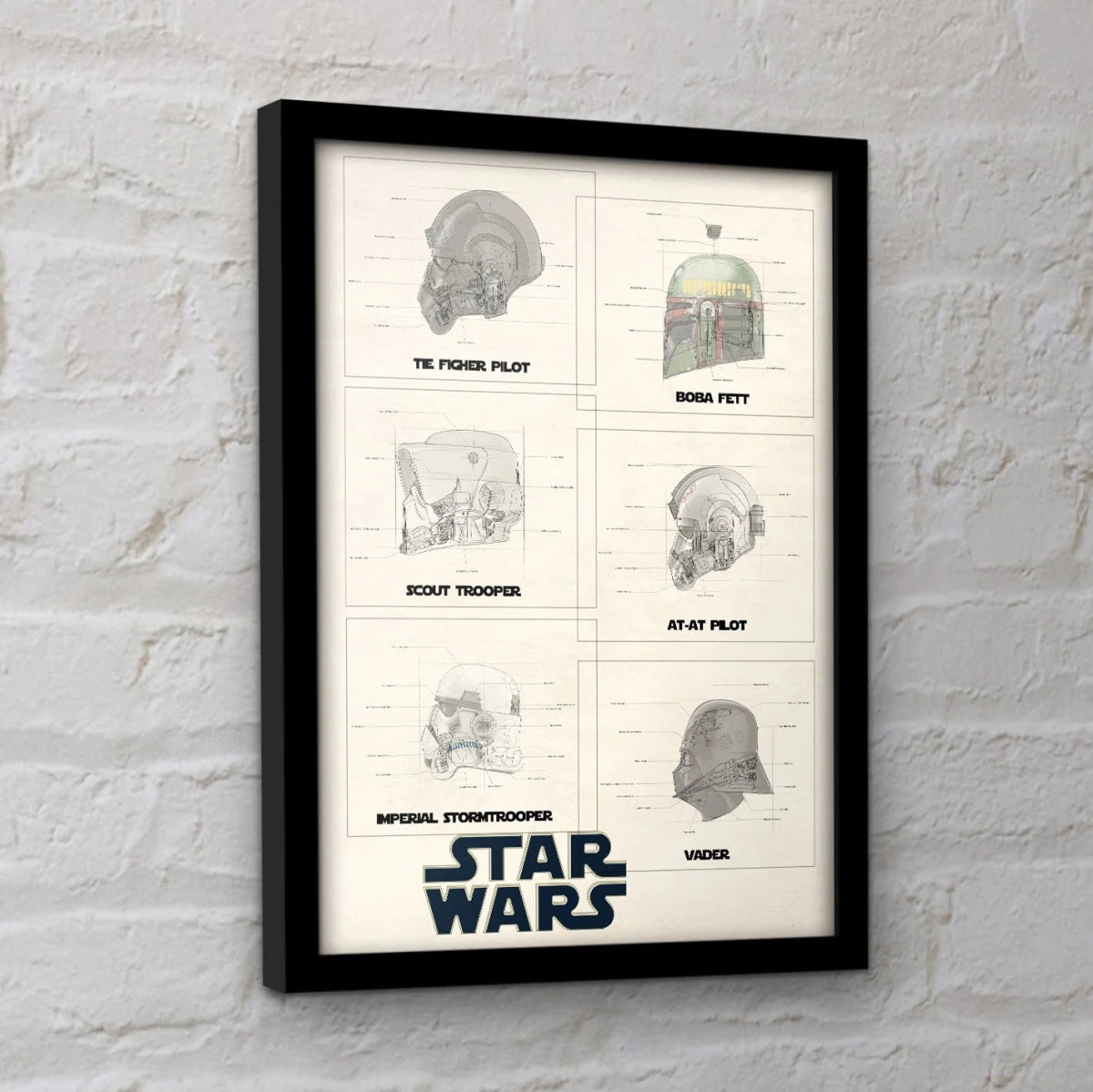 Make your room galactic with this stylish Star Wars framed picture - Helmets! Featuring a powerful motif of iconic helmets from both the Empire and the Rebels, this is perfect for a Star Wars fan who loves the visual aesthetic of the universe.