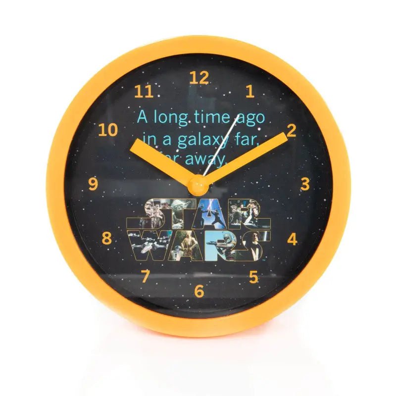 Make your desk galactic with this stylish Star Wars clock featuring the iconic A Long Time Ago... design! It's perfect for any Star Wars fan who wants to brighten up their everyday life with a touch of nostalgia and style. Whether at home, in the office or in a child's room, this will become a timeless favorite.