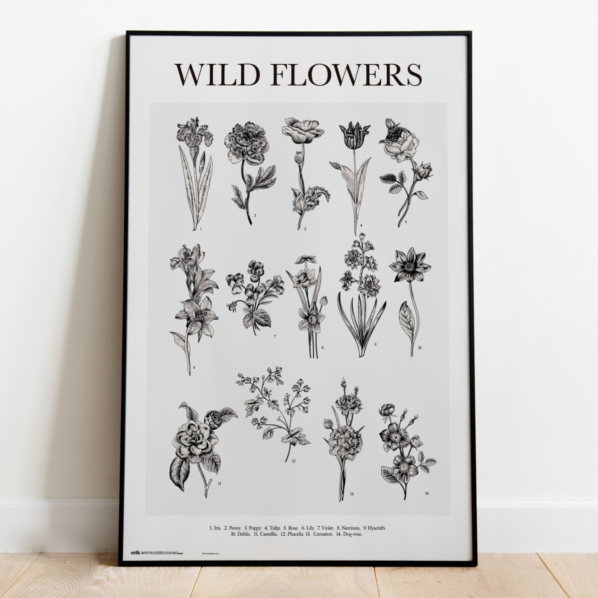 For those who appreciate the natural beauty of wildflowers, this botanical poster is an absolute must-have. This informative and aesthetically pleasing poster provides an overview of a variety of wildflowers, complete with their English names for easy identification.