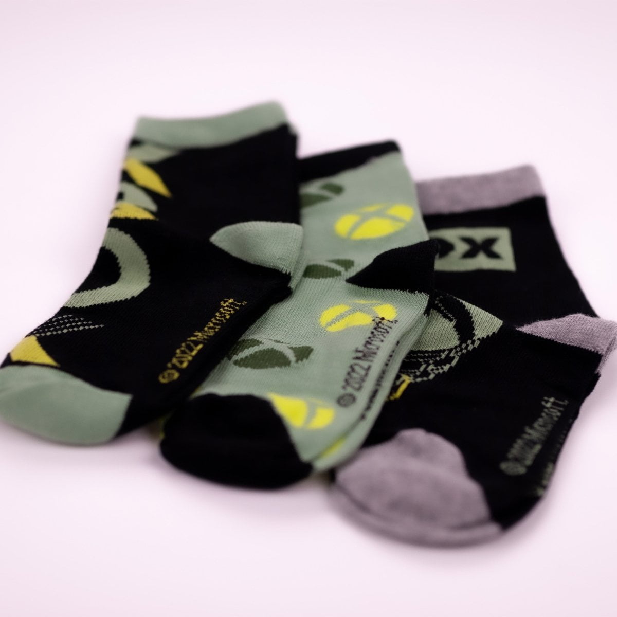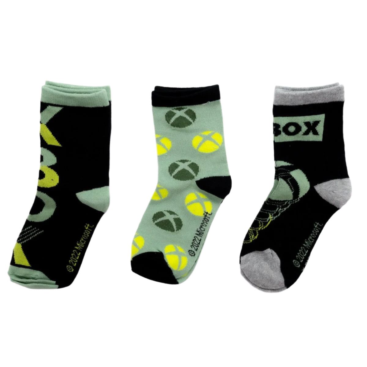 Pack of three pairs of super cool socks for kids from Xbox. These socks feature images of the Xbox logo, symbols and controllers. Perfect for kids who love playing Xbox and want to freshen up their wardrobe with some Xbox clothing.
