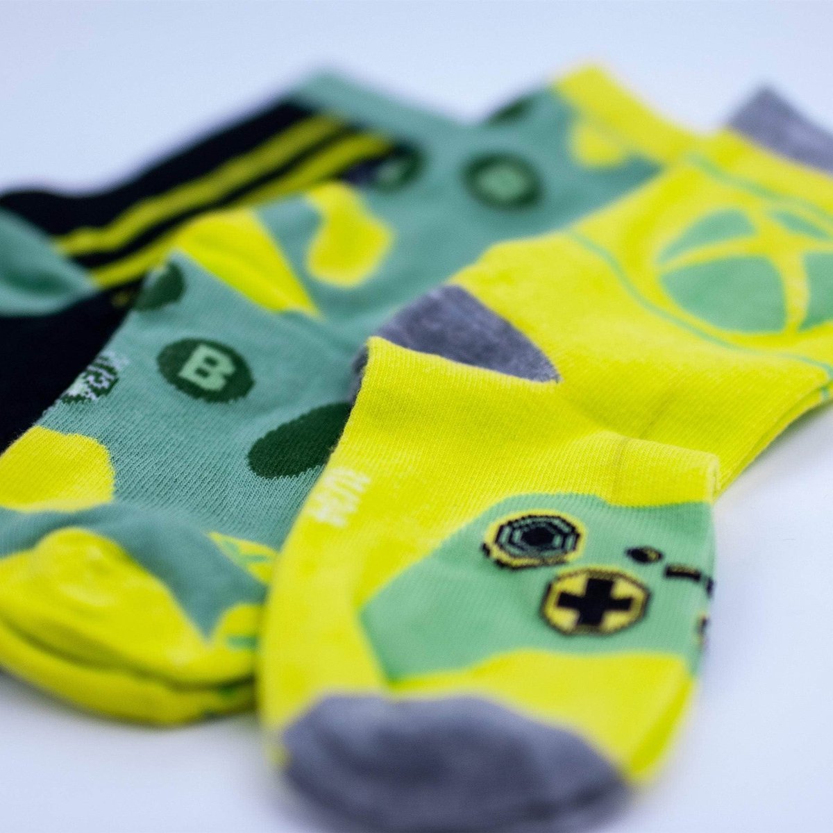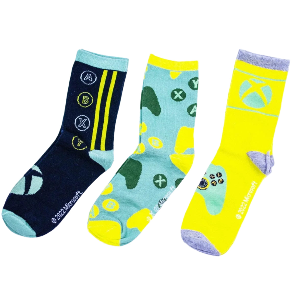 Pack of three pairs of super cool socks for kids from Xbox. These socks feature images of the Xbox logo, symbols and controllers. Perfect for kids who love playing Xbox and want to freshen up their wardrobe with some Xbox clothing.